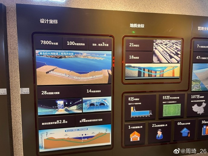 周琦晒出自己游览青岛海底隧道博物馆的照片,并写道:“了解海底隧道…太强了!”