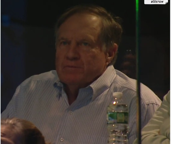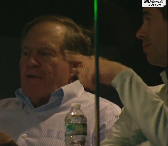绿军同城NFL球队新英格兰爱国者的主帅比尔-比利切克也来到了现场包厢看球,绿军总裁史蒂文斯在其身边陪同。