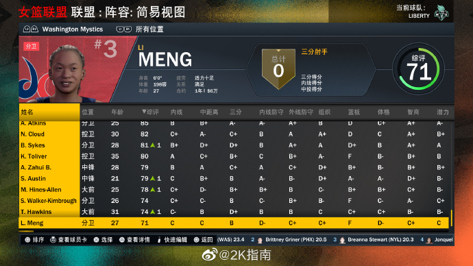 这面补有些偷懒?2K23更新WNBA名单:韩旭、李月汝、李梦在列
