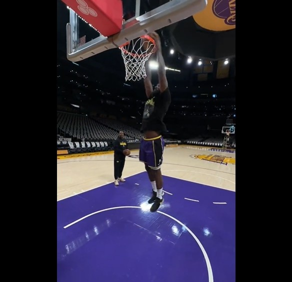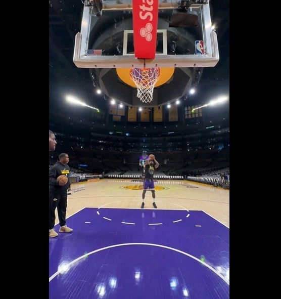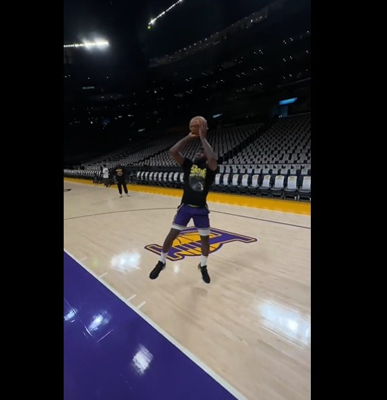 湖人球星詹姆斯提前四小时来到球馆进行热身训练!