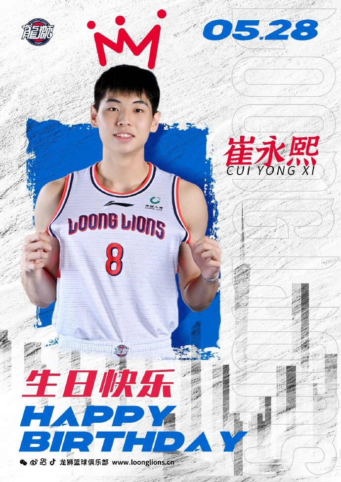 直播吧5月28日讯 今天是广州男篮新星崔永熙的20岁生日,俱乐部官博为其送上生日祝福。