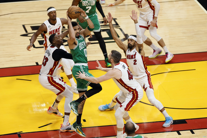 直播吧5月28日讯 NBA东部决赛G6,凯尔特人104-103险胜热火,总比分追成3-3平。