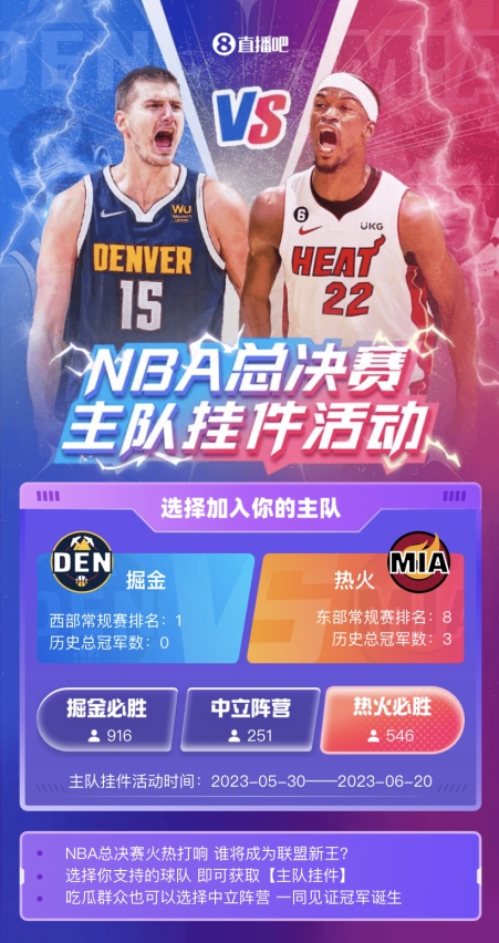 当前只可以选择热火、掘金和吃瓜群众嗷~