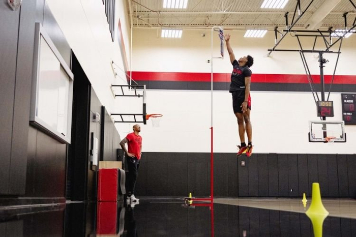 直播吧5月31日讯 今日手握今年探花签的开拓者试训了本次选秀的热门新秀阿门-汤普森和奥萨尔-汤普森俩兄弟。