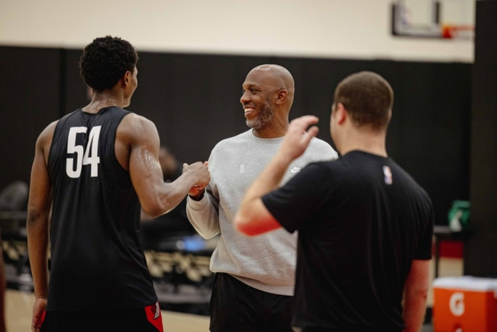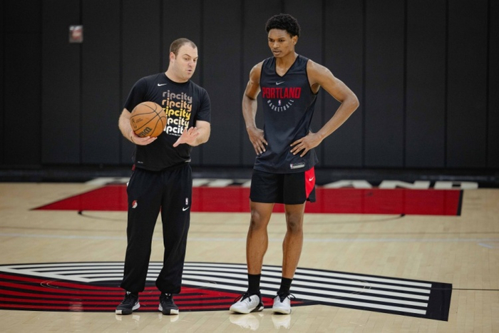 开拓者官方晒出了试训照,其中球队核心利拉德现身观看试训,并面带微笑。