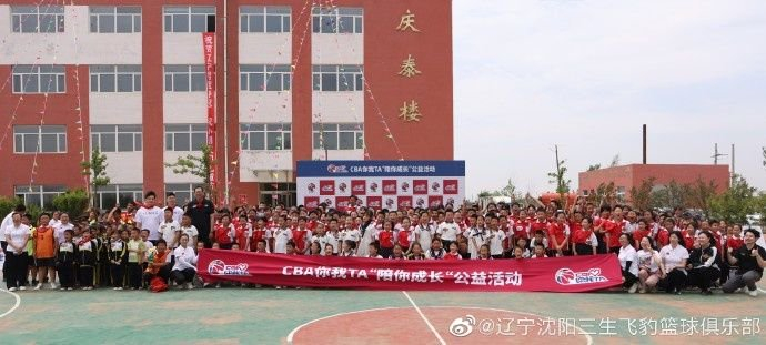 在公益活动的最后,在现场的五台子小学的师生们和吴乃群、鄢手骐、周俊成一起合影。面对摄影摄像机的镜头,孩子们大声喊出了辽篮球迷熟悉的口号:“1234,我爱辽篮!”