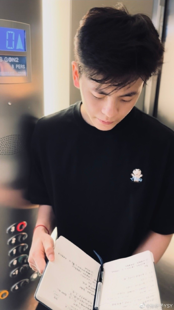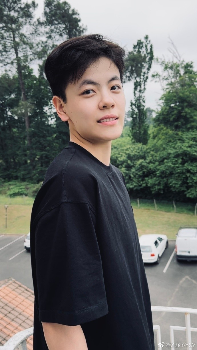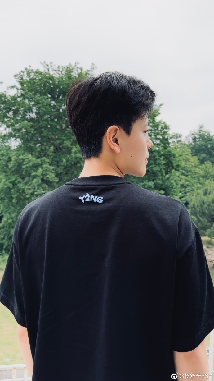 有点小帅😎杨舒予穿印有小羊的黑色T恤 配文:最近还好吗?