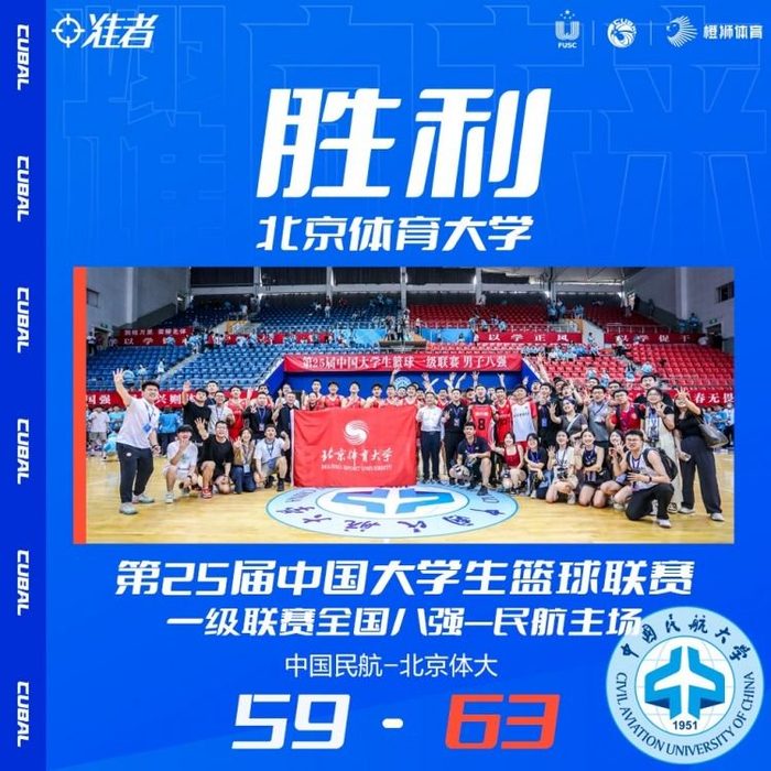 末节决战,面对如此困境中国民航并没有放弃,高宇坤内线强打命中还造成加罚,刘春雨也扔进三分,中国民航再次顽强扳平比分,杨腾飞篮下强打止血,谢智杰轻松突破再次稳住领先,虽然高宇坤接连内线取分,但北体大都能回应,尼加提三分命中后鲁骜抛投再中将分差拉开至9分,中国民航再无翻盘机会,最终北体大63-59再胜中国民航,以两战全胜的成绩,昂首挺进全国四强。