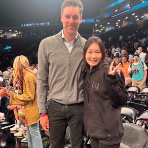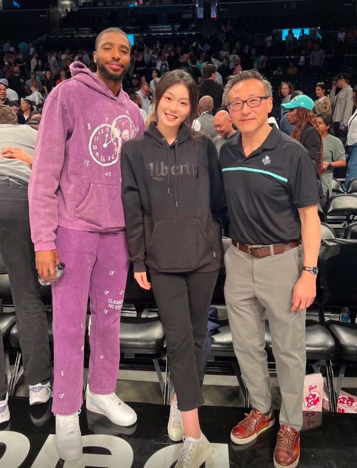 王芙蕖在现场与NBA名宿保罗-加索尔、篮网和自由人的老板蔡崇信、篮网球员布里奇斯、WNBA自由人球员斯图尔特进行了合影。