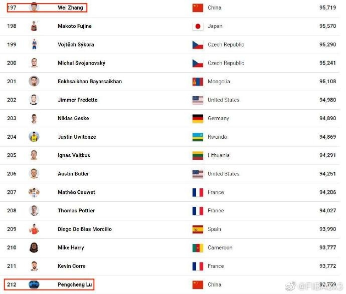 参加日照国家联赛的陈明伶上升1位目前世界排名第19,张为和卢鹏程首次进入Top250行列分别排在世界第197和212位!