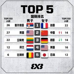 中国三人女篮世界排名上升至第2 中国三人男篮升至世界第10