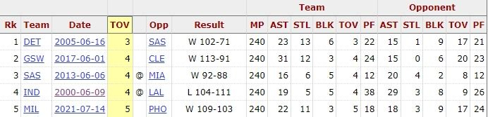 热火全场仅出现4次失误,并列NBA总决赛历史第二少,但他们仍然输掉了比赛,只有2000年的步行者也出现过这种情况。