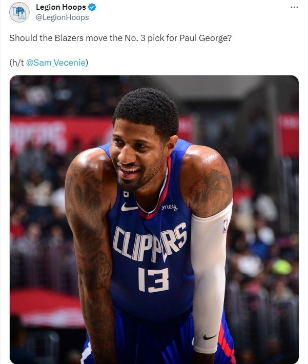美媒Legion Hoops发出了提问:“开拓者是否该为保罗-乔治交易探花签?”