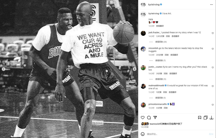 曾说篮球是艺术!欧文晒乔丹训练照:我爱艺术🤞🏾️🖤