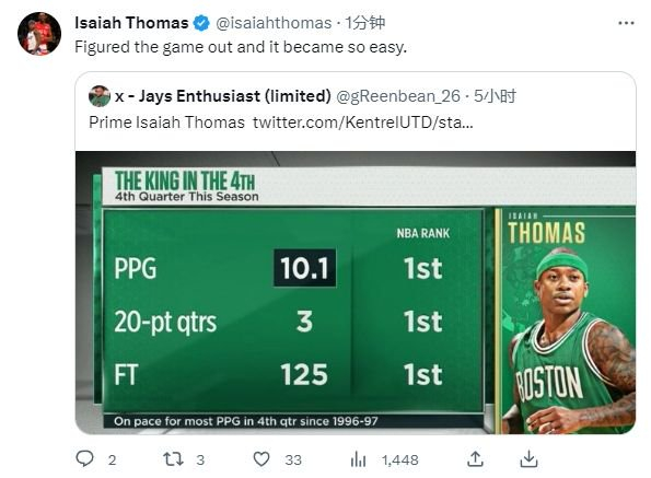 小托马斯转发自己末节场均10.1分数据:弄明白比赛之后这很容易