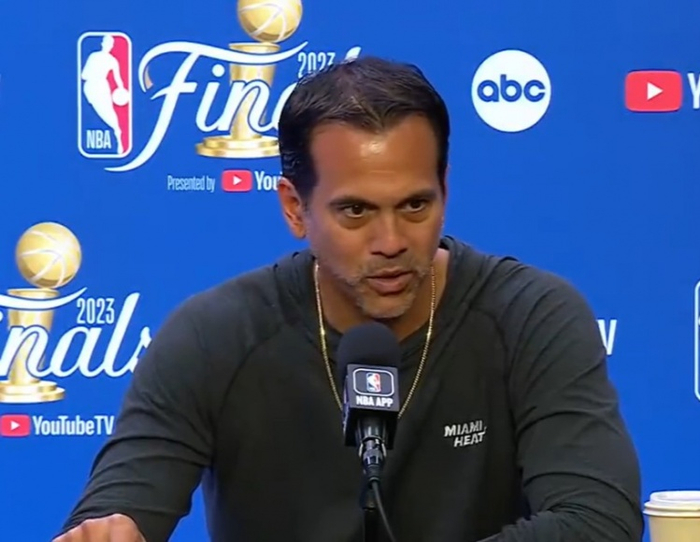 直播吧6月12日讯 带队完成了今天的训练后,热火主帅斯波尔斯特拉接受了媒体的采访。