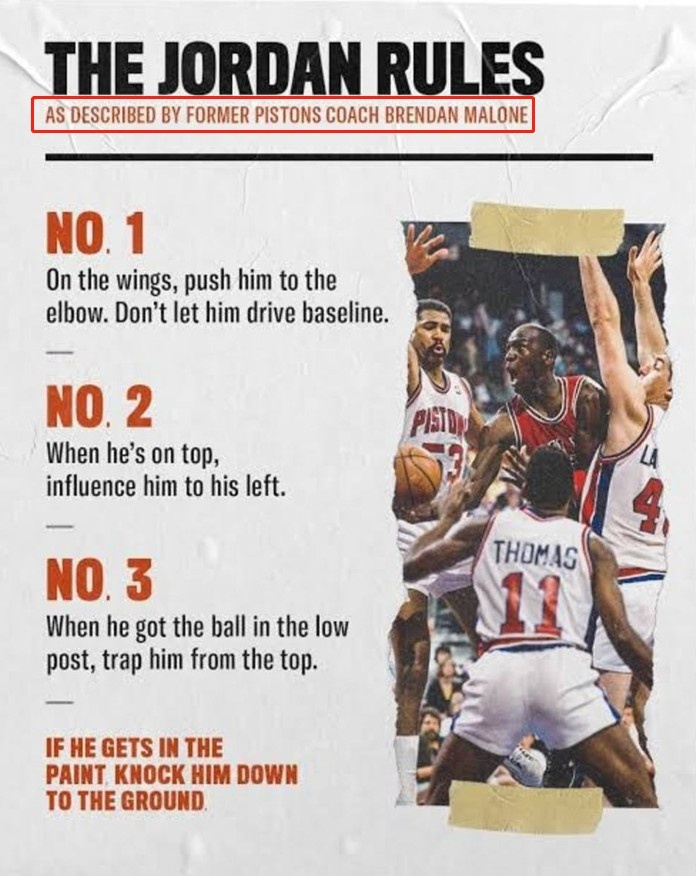 布兰登-马龙做了一辈子教练,从上世纪80年代开始,先后在六支NBA球队执教,直到2016年才退休。他最著名的头衔,应该是“乔丹规则”发明者,因为他作为防守教练帮助活塞拿下了两连冠,而那支“坏孩子军团”,曾经是公牛和乔丹的阴影。