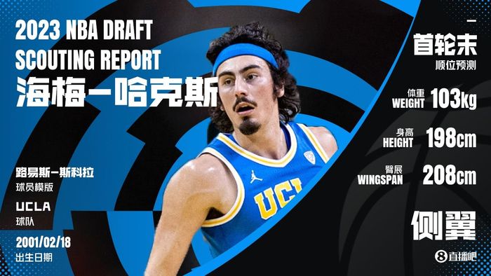 哈克斯是一个复古的强壮侧翼,气质成熟,球风硬朗,进攻细腻,防守聪明。进攻端出色的节奏和防守端略慢的脚步是一种公平的能力展现,而出色的球商和阅读比赛的能力则是他独有的优势。虽然是地板流打法,但哈克斯在联合试训中有不错的动态数据,这可能会让他的顺位有所提升。哈克斯很像人们常说的“球场老大爷”,作为一个大学四年收割了大量荣誉的“老球员”,他会是一个非常不错的即战力,唯一的问题是他会进入一支什么样的球队,在攻防两端扮演什么样的角色。
