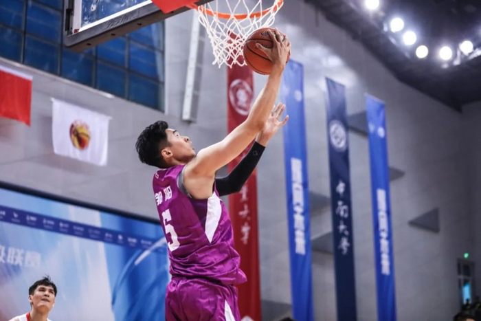第二节,钟国兴飙中三分,龚思成突然发力里突外投独得8分带队打出10-2的攻击波反超比分,高宇锋三分止血,此后双方展开拉锯战,互送进攻高潮,中南大学轮番冲击内线拿分打成7-2的攻势以47-41领先结束上半场。