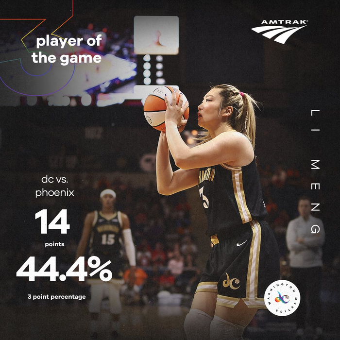 4、WNBA生涯总得分来到40分,超越苗立杰(31分),成为中国女篮外线球员WNBA历史得分第一人!