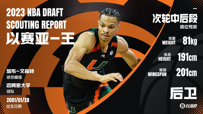 2、勤奋积极。王拥有相对于他身体条件而言不错的抢断和封盖数据,他在联合试训中的表现积极,总能在防守端保持竞争。王还会积极保护篮板,这帮助他更好的在转换进攻中发挥作用。王在大学期间每年都在进步,在获得了荣誉的同时,还帮助迈阿密大学打入了NCAA最终四强。