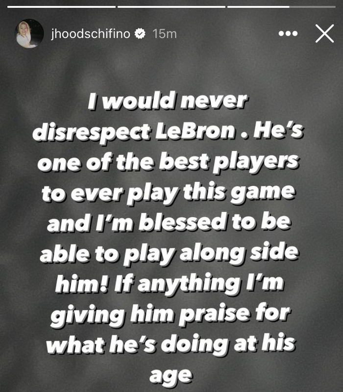 “我绝对不会不尊重勒布朗,他是历史最佳之一,能够做他的队友是我的荣幸!如果我这句话有任何意思的话,那就是在赞美他在这个年纪所做到的一切!”席菲诺写道。