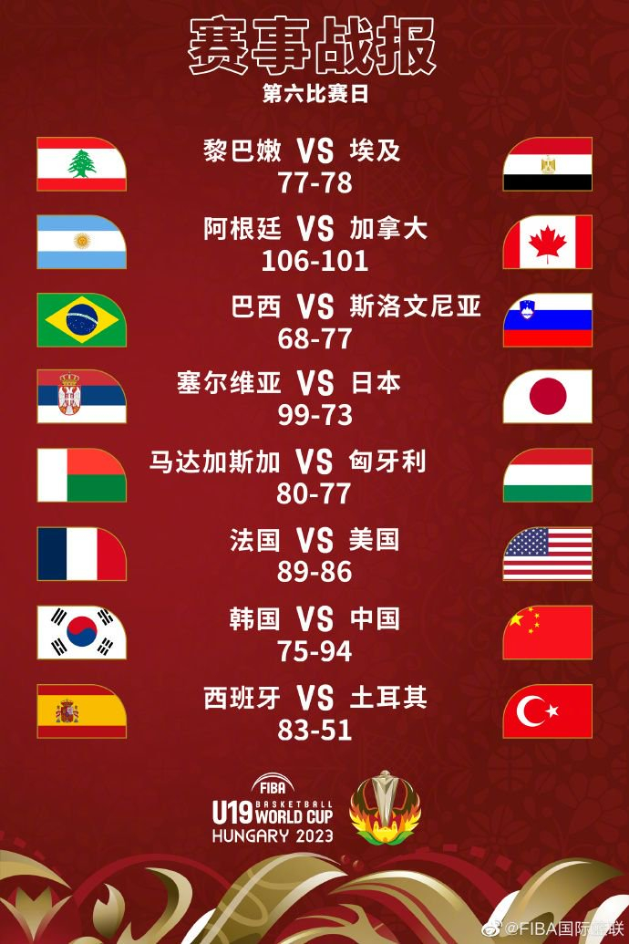 另外,中国男篮U19将在今天晚上9点迎来和斯洛文尼亚U19的9-10名排位赛,赢球队伍将会是本届赛事的第9名,输球队伍将会是本届赛事的第10名。