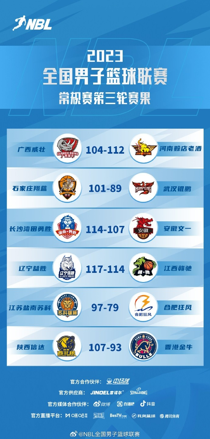 2023NBL常规赛第三轮六场比赛今日同时进行,赛季至今有两支球队未取得首胜。