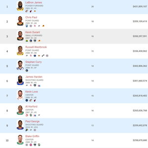 看看现役球员生涯至今总薪资前十名 谁的出现最让你感到意外?