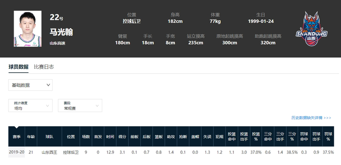 15、【次轮第11顺位:马光翰 山东】(仅在CBA出战9场;目前在NBL效力)