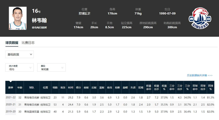 伤愈复出后的这两个赛季,王睿泽已经成为青岛队外线不可或缺的稳定火力点,上赛季场均14分5.9篮板2.6助攻1.1抢断,均为生涯最高。