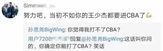虽然进入联盟前,用一句“你觉得我打不了CBA”回应网友,并成功打脸所有质疑他的人,但本赛季与北控合同的最后一年,孙思尧连一次出场机会都没捞到。今后到底“打不打得了CBA”,也要被画上一个大大的问号。