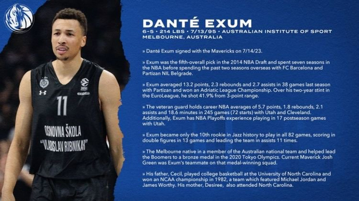直播吧7月15日讯 今天,独行侠官方宣布签下了丹特-艾克萨姆。