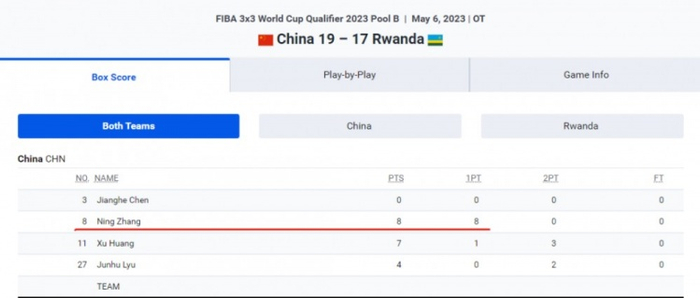 第一场对阵斯洛文尼亚,替补出场的张宁独得8分,其他三个队友加起来只得了4分。第二场打卢旺达,张宁同样砍下全队最高的8分,并在常规时间结束前扳平比分的关键球,将比赛拖入加时赛。