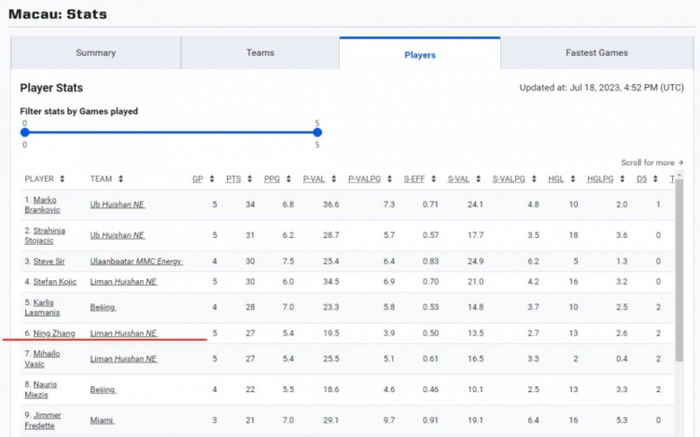 以澳门大师赛为例,张宁在这一站拿到了94284个积分,在队内仅次于科基奇——个人积分一共由5个部分组成,球队成绩排名、提前赢得比赛、个人得分表现、个人数据、个人投篮价值。简单来说,前两项取决于球队的整体实力,而后三项完全看个人表现。澳门大师赛,张宁的个人表现很抢眼,在对阵杜塞尔多夫的小组赛命中绝平球,半决赛面对拥有弗莱德特的乌兰巴托队独砍11分,五场比赛一共砍下27分,位列本站赛事得分榜第6位,在队内仅次于科基奇。