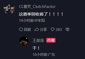 曹芳留言说:“这赛季别收着了!!!!”王泉泽回复道:“干!”