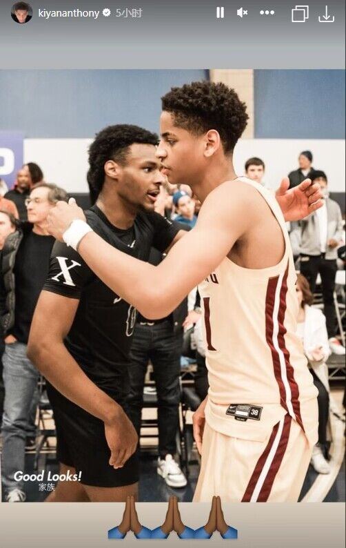 为兄弟祈祷!安东尼儿子基扬晒出自己与布朗尼合照:🙏🙏🙏