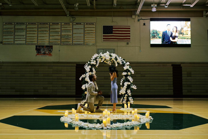 去年9月布伦森在高中篮球馆向Ali Marks求婚