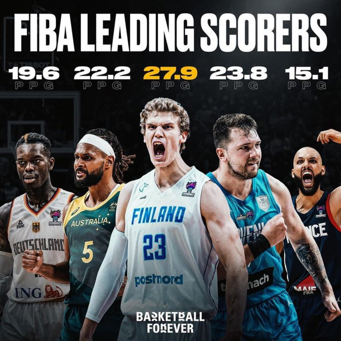 其中,马尔卡宁以27.9分高居榜首,东契奇23.8分紧随其后,米尔斯22.2分排名第3,施罗德19.6分,富尼耶15.1分。