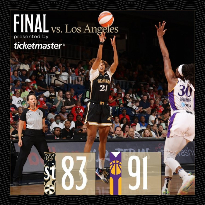 直播吧8月7日讯 今日WNBA比赛,华盛顿神秘人83-91不敌洛杉矶火花。
