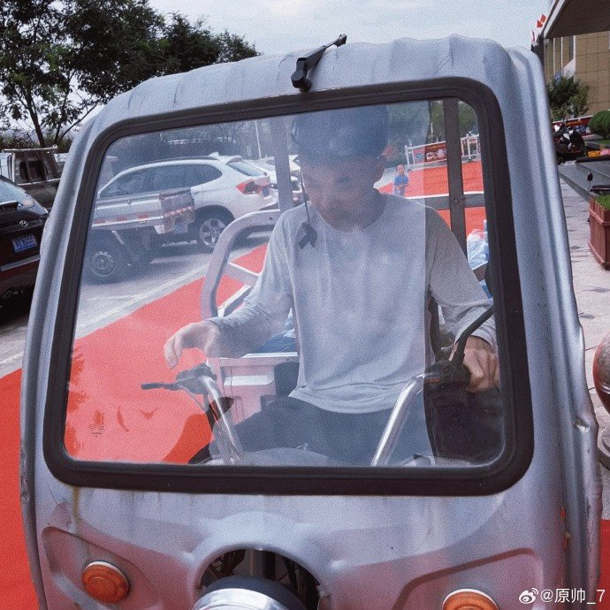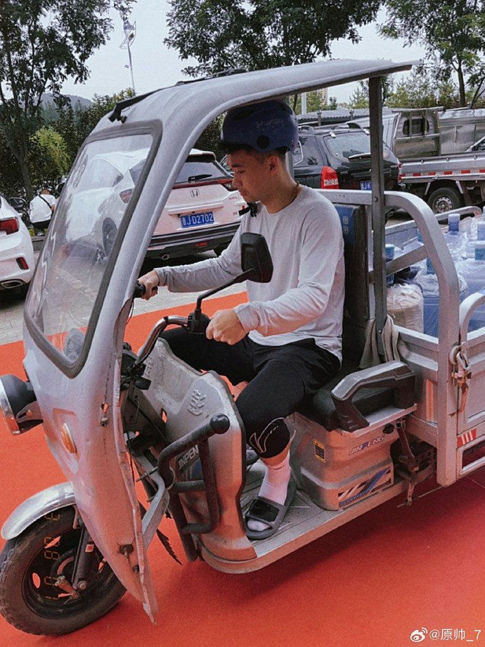 原帅晒出自己骑着三轮车拉水的照片,配文写道:“兼职🛺 ”