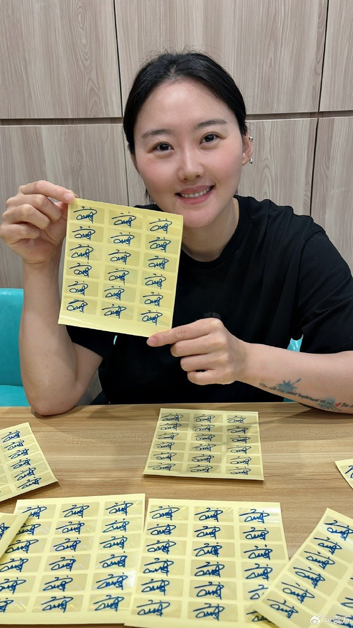 两人手捧奶茶进行合影,武桐桐还认真地签着名,每个签名如同复制粘贴般规整。