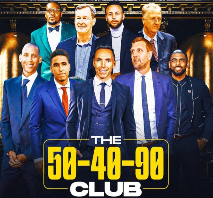直播吧8月15日讯 今天,美媒ClutchPoints晒出了NBA历史上单赛季打出过180(投篮命中率50%+、三分命中率40%+、罚球命中率90%+)俱乐部的球员,详情如下: