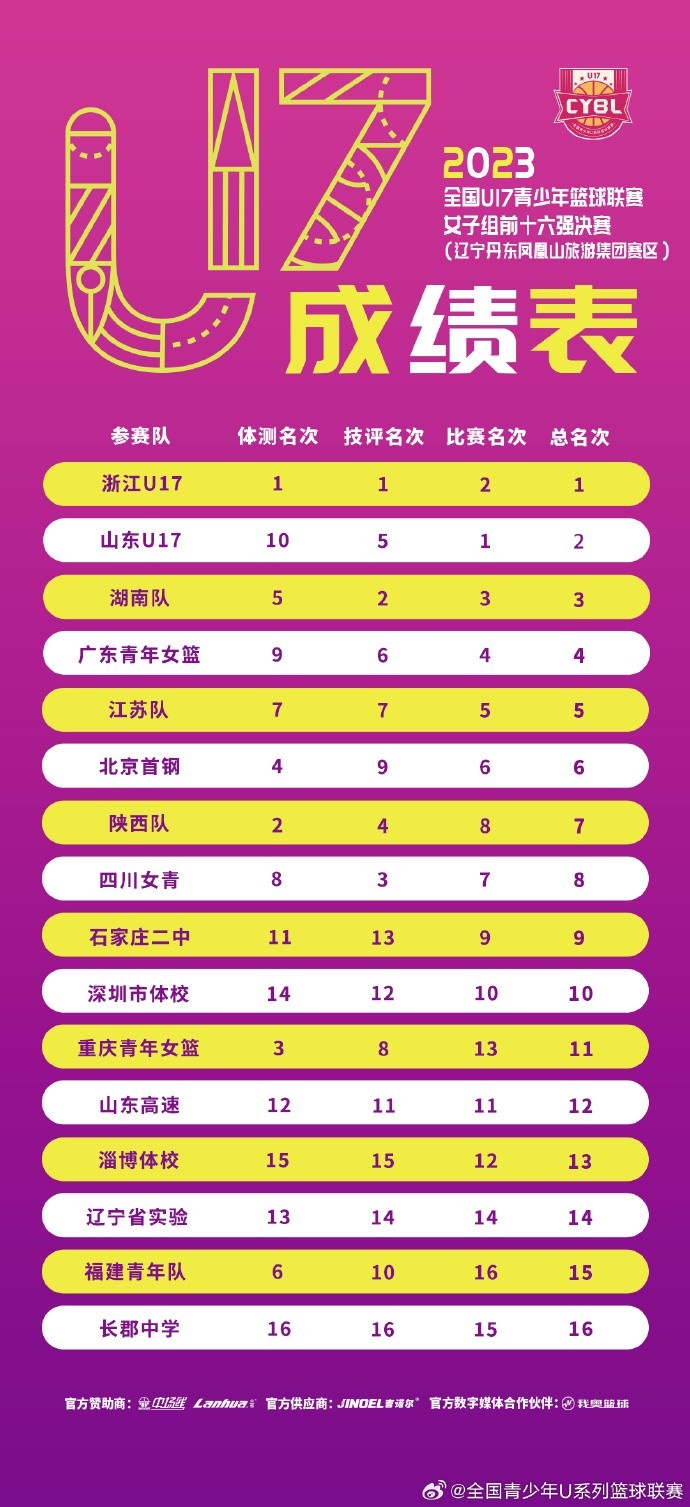 相关新闻:U17青少年篮球联赛女子组成绩表 浙江总冠军 山东亚军 湖南季军