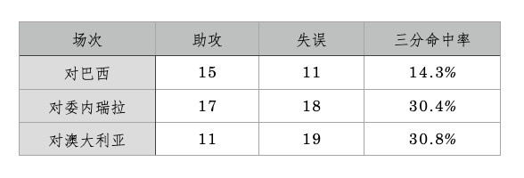 不过,他们可以通过积极的防守把对手的得分效率拉低到与自己同一水平线(委内瑞拉全场投篮命中率只有29.7%),同时一直利用身体优势往篮下冲击,在消耗对手的同时,争取easy basket的机会,就这样占得领先。