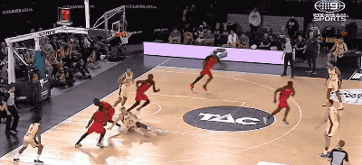 16岁身高2米16的Khaman Maluach在成功大防小之余,还打成了快攻