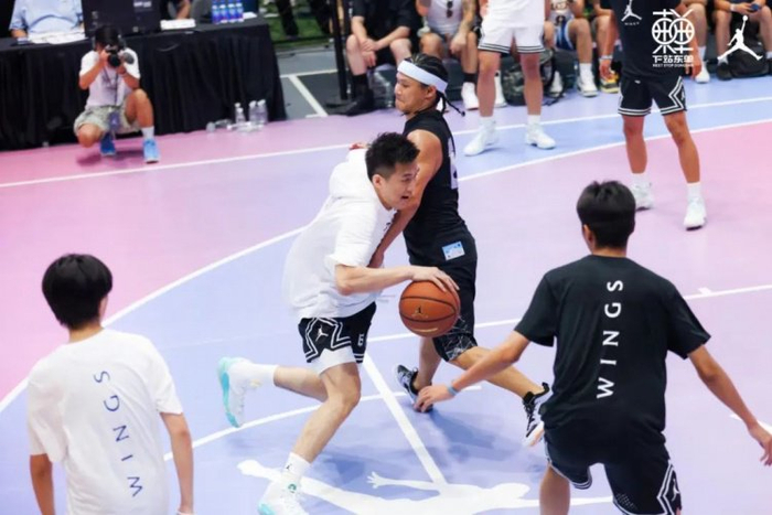 郭艾伦一边说,一边望着不远处“下站东单”的主题宣传板,紫色与粉色的融合,仿佛日落时分那一抹晚霞,给球场带来了流动的色彩。在宣传板中央,“Beyond”陪伴Jumpman标志,一眼望去,如同给“不断超越”的理念插上了翅膀。