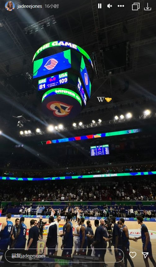 最近的男篮世界杯,哈利伯顿女友Jade Jones也来到现场,为男友加油,不知道细心的网友有没有在直播中找到她呢?