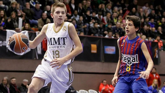 他被租借到皇马,参加西班牙14岁以下俱乐部比赛,拿到MVP;他又带奥林匹亚在罗马拿了13岁锦标赛冠军,半决赛29分,决赛54分的三双。