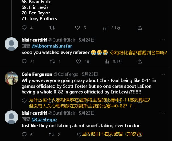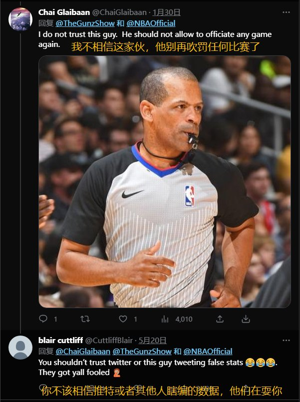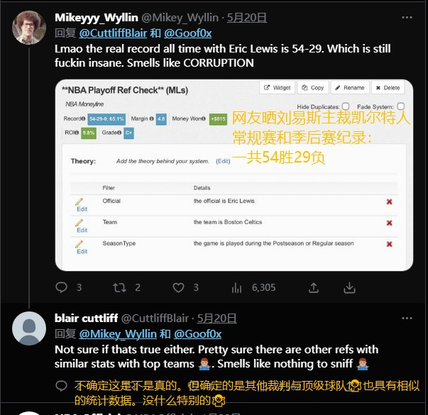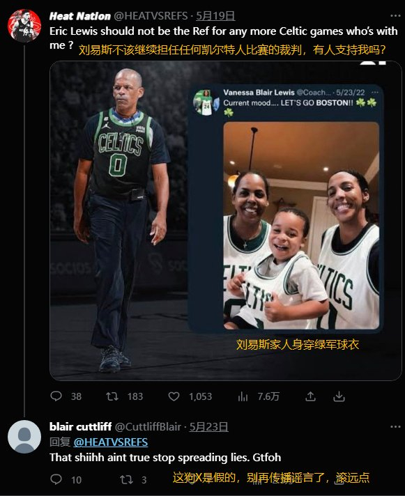 名记:官方因推特活动审查裁判刘易斯 网友晒疑似小号截图